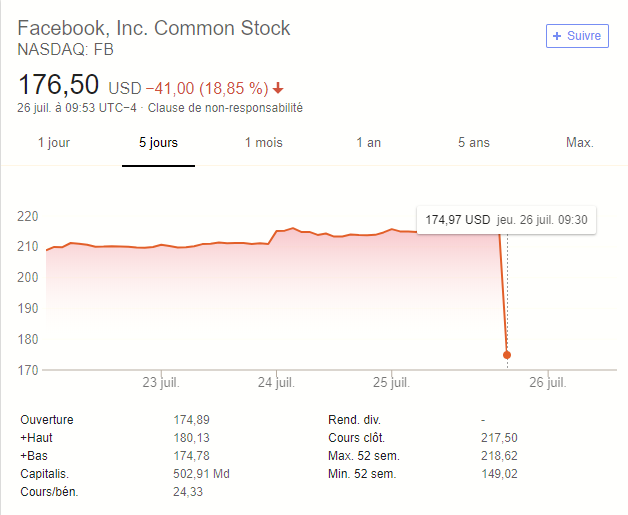 L Action Facebook Plonge A La Bourse De Wall Street